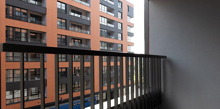 Apartament posiada dwie loggie. Na ścianach tynk strukturalny, na podłogach płytki gresowe, metalowa balustrada.