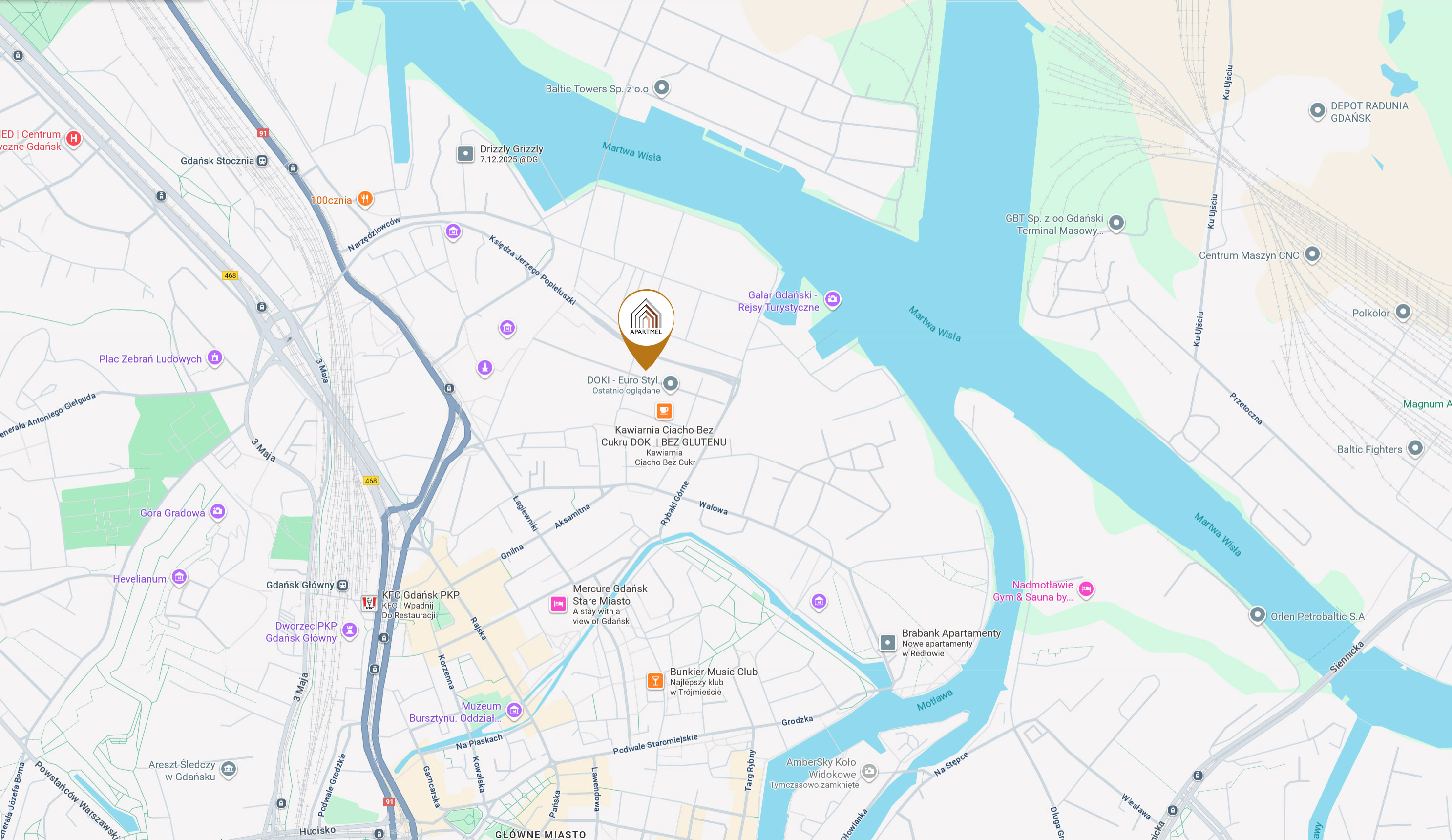 Osiedle DOKI to wyjątkowa przestrzeń, w której historia stoczniowa spotyka się z nowoczesnym stylem życia. Położone w bezpośrednim sąsiedztwie Motławy, oferuje niepowtarzalne widoki na wodę i panoramę miasta, a zarazem bliskość tętniącego życiem centrum Gdańska. Lokalizacja osiedla zapewnia doskonałą komunikację – w kilka minut można dotrzeć do Starego Miasta, dworca Gdańsk Główny czy Europejskiego Centrum Solidarności. W pobliżu znajdują się przystanki tramwajowe, autobusowe oraz węzły drogowe, co gwarantuje wygodne połączenia z całym Trójmiastem. Wokół DOKÓW rozwija się dynamiczna, miejska infrastruktura – liczne sklepy, restauracje, kawiarnie, galerie sztuki, przestrzenie coworkingowe i punkty usługowe tworzą pulsujące życiem otoczenie. W zasięgu spaceru znajdują się również szkoły, przedszkola i centra edukacyjne, co czyni lokalizację idealną także dla rodzin.