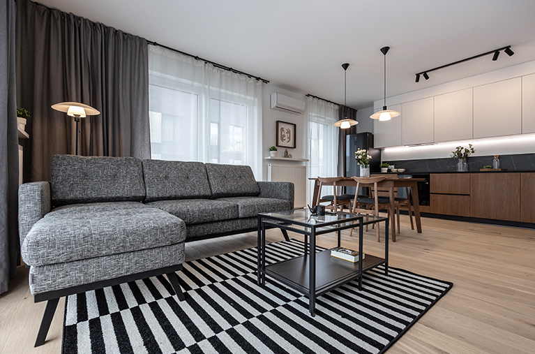 Do wynajęcia nowe, 2-pok. mieszkanie nieopodal Manufaktury na nowoczesnym osiedlu Murapol Argentum, z ochroną, monitoringiem i zielenią wokół. Łódź, dzielnica Polesie, ul. Srebrzyńska 12. Wnętrze zaprojektowane przez architekta – styl, komfort i funkcjonalność.