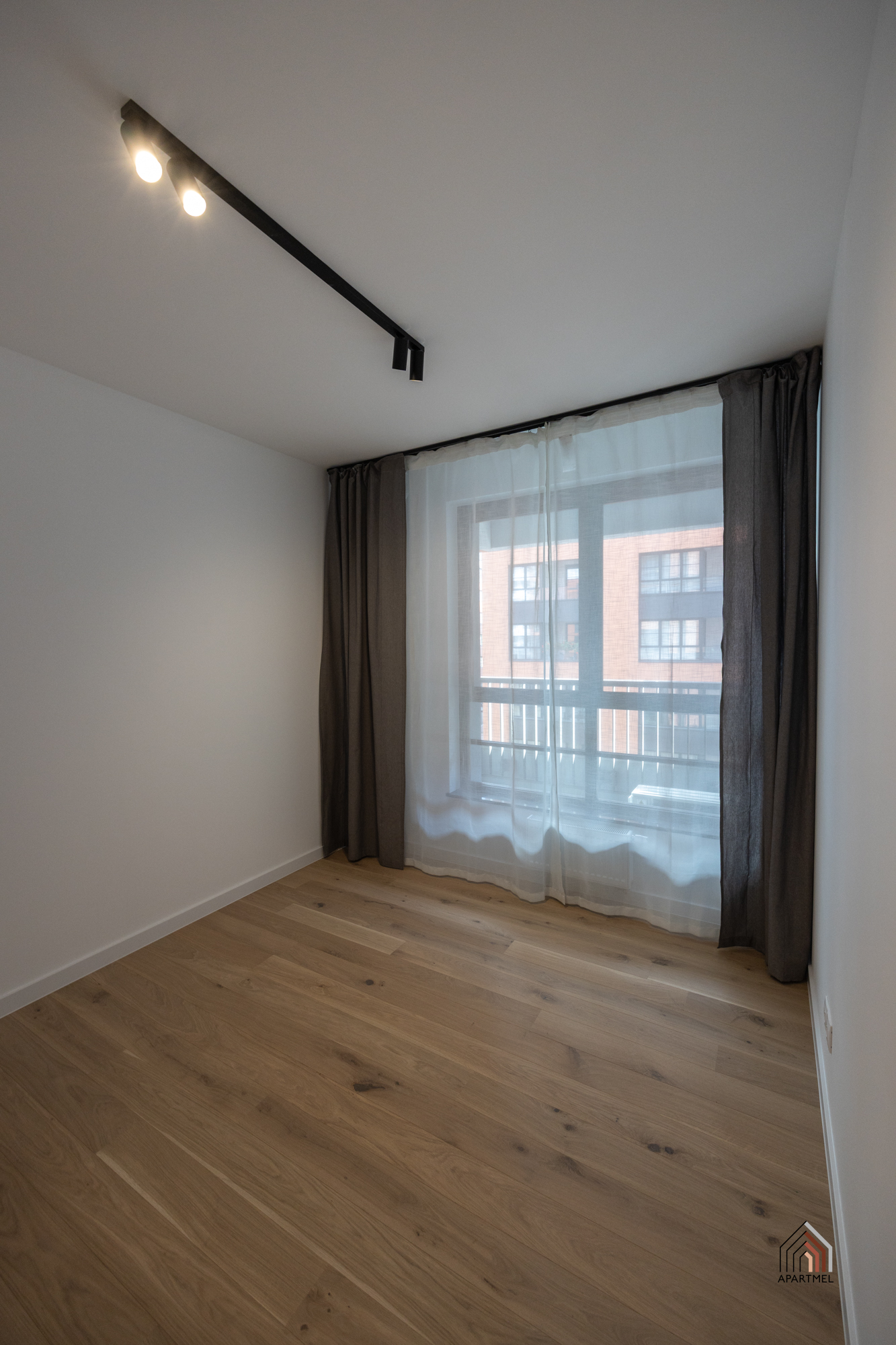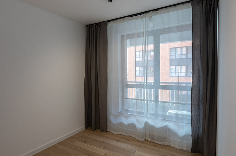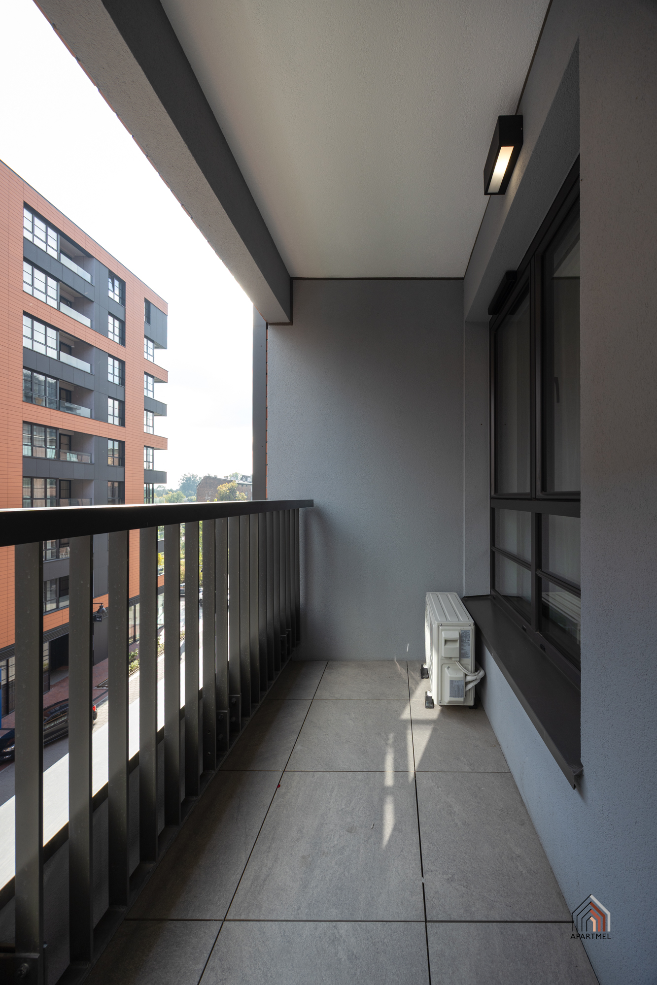 Apartament posiada dwie loggie. Na ścianach tynk strukturalny, na podłogach płytki gresowe, metalowa balustrada.