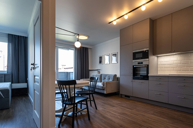 Do wynajęcia nowe, 2-pok. mieszkanie nieopodal Manufaktury na nowoczesnym osiedlu Murapol Argentum, z ochroną, monitoringiem i zielenią wokół. Łódź, dzielnica Polesie, ul. Srebrzyńska 12. Wnętrze zaprojektowane przez architekta – styl, komfort i funkcjonalność.